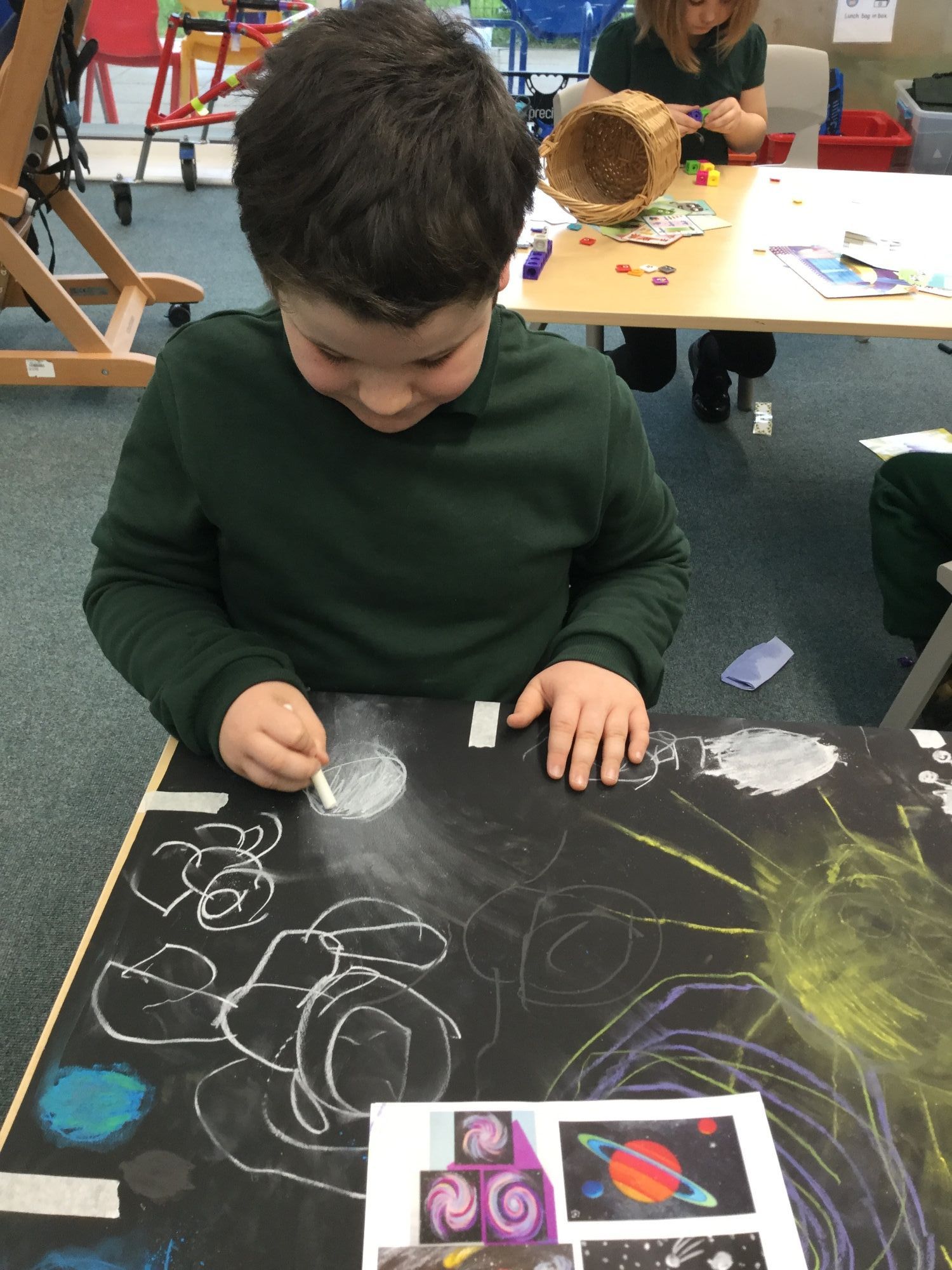 We have also enjoyed learning about Space. We discovered the names of all the planets and discussed what we would take with us on a trip to the moon!