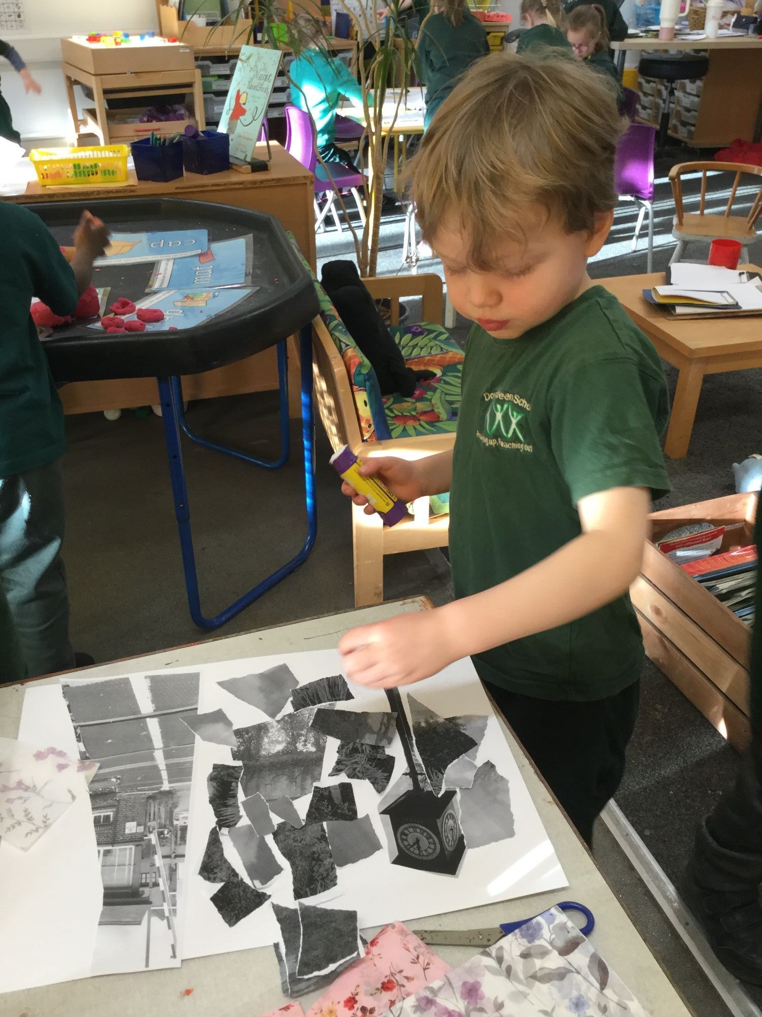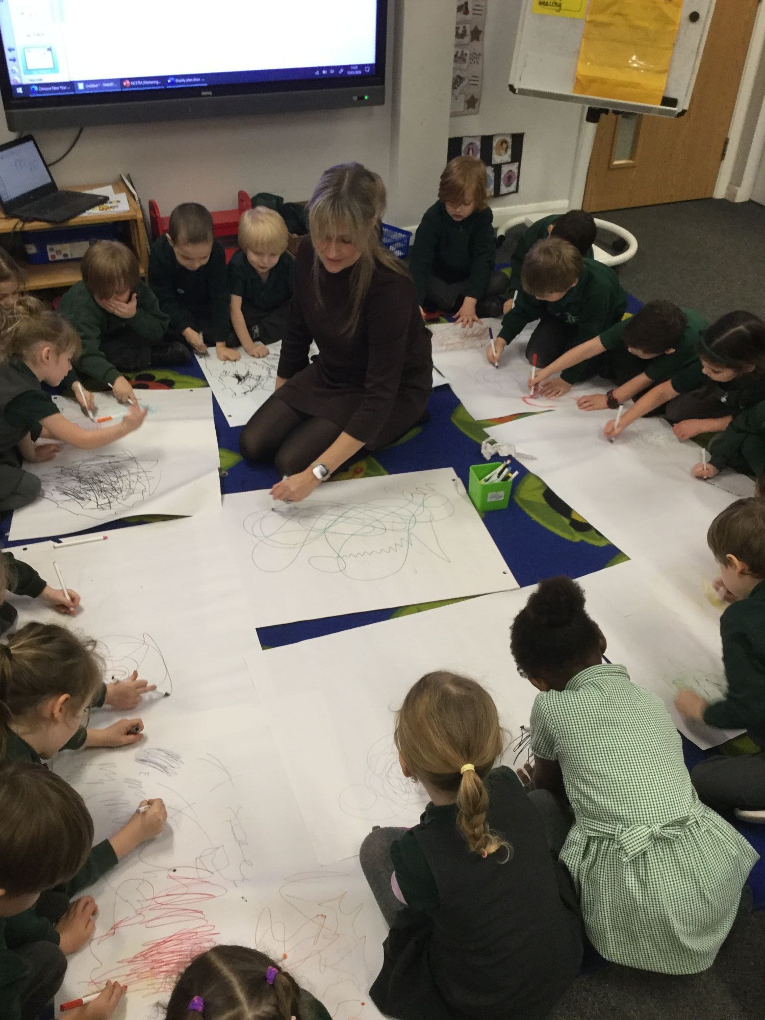 We have listened to Chinese music and created drawings in response to it, exploring fast and slow, sharp and stilted sounds. In maths, we have been working on stamping patterns of 4 and 5.
