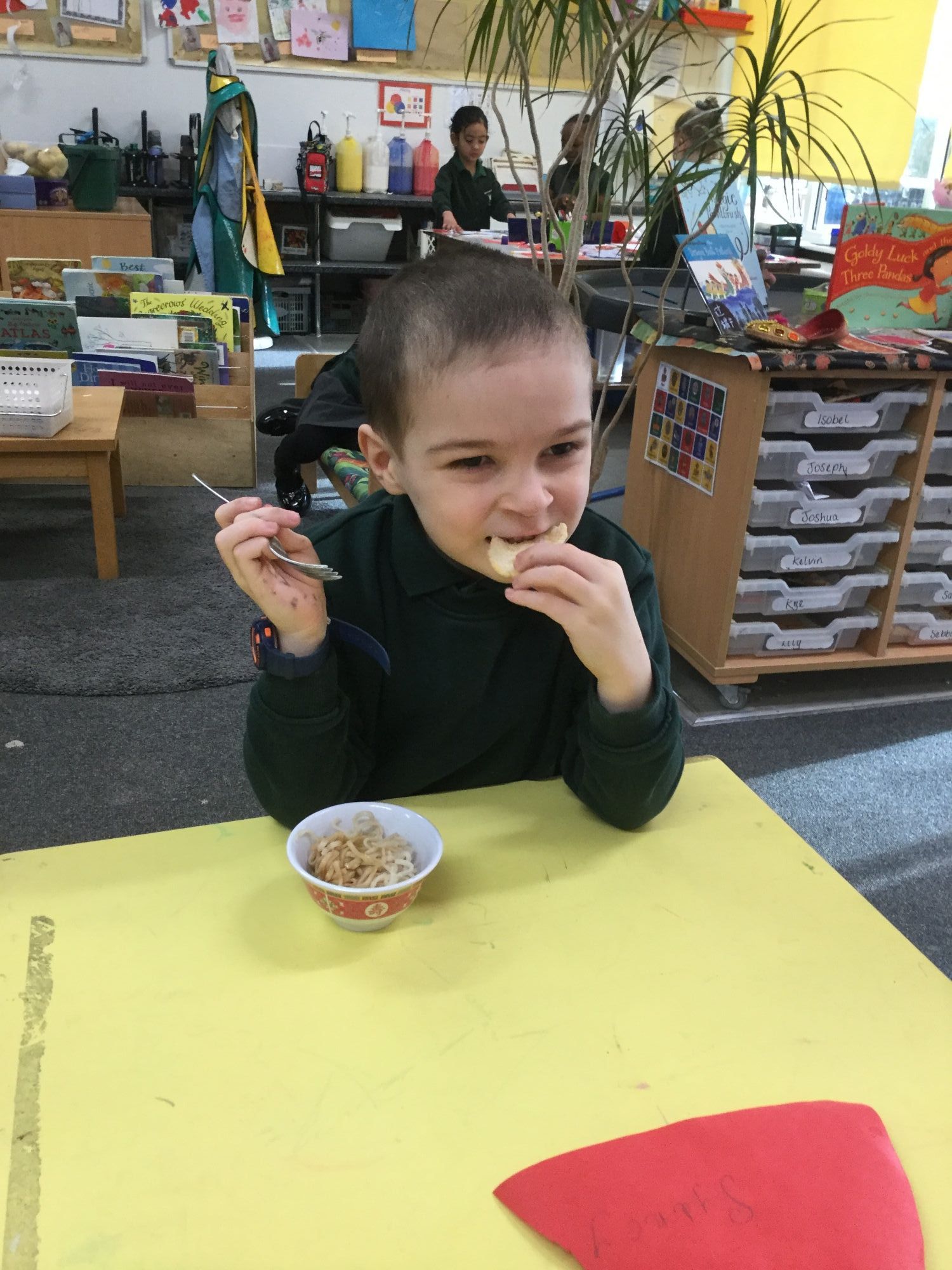 In Yellow Ladybirds, so far this half term, we have been enjoying our new topic The Magic Paintbrush and learning all about China! We have loved trying Chinese food, including noodles with soy sauce and a hoisin-flavoured prawn cracker accompaniment.